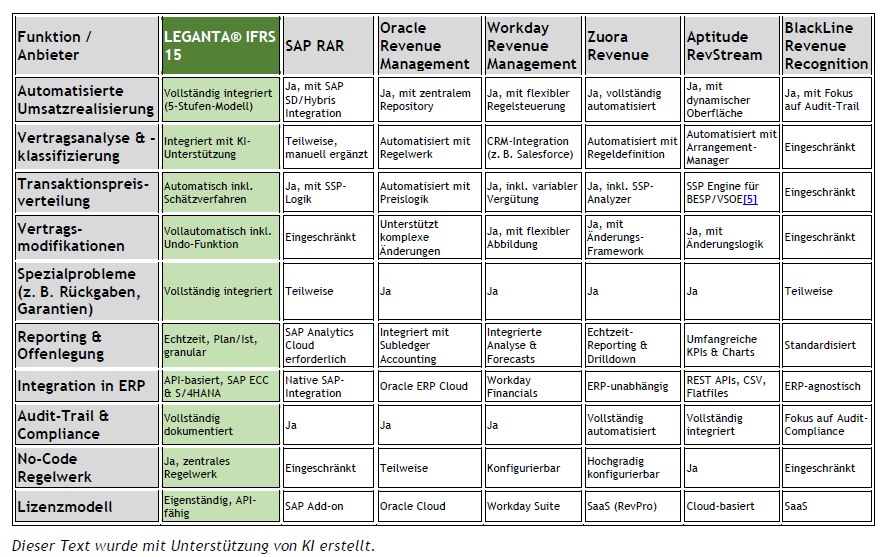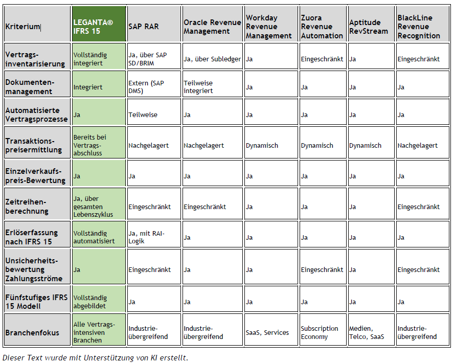 LEGANTA® IFRS 15 im Vergleich mit Wettbewerbern